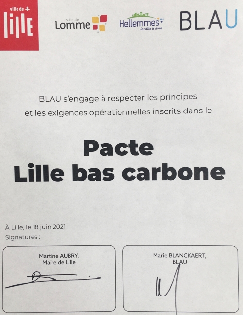 BLAU est fière d'être signataire du Pacte Lille Bas Carbone initié par la Ville de Lille. Ces valeurs, nous les portons depuis quelques années à travers nos projets d'urbanisme, d'architecture et depuis 3 ans avec notre engagement dans l'economie circulaire!